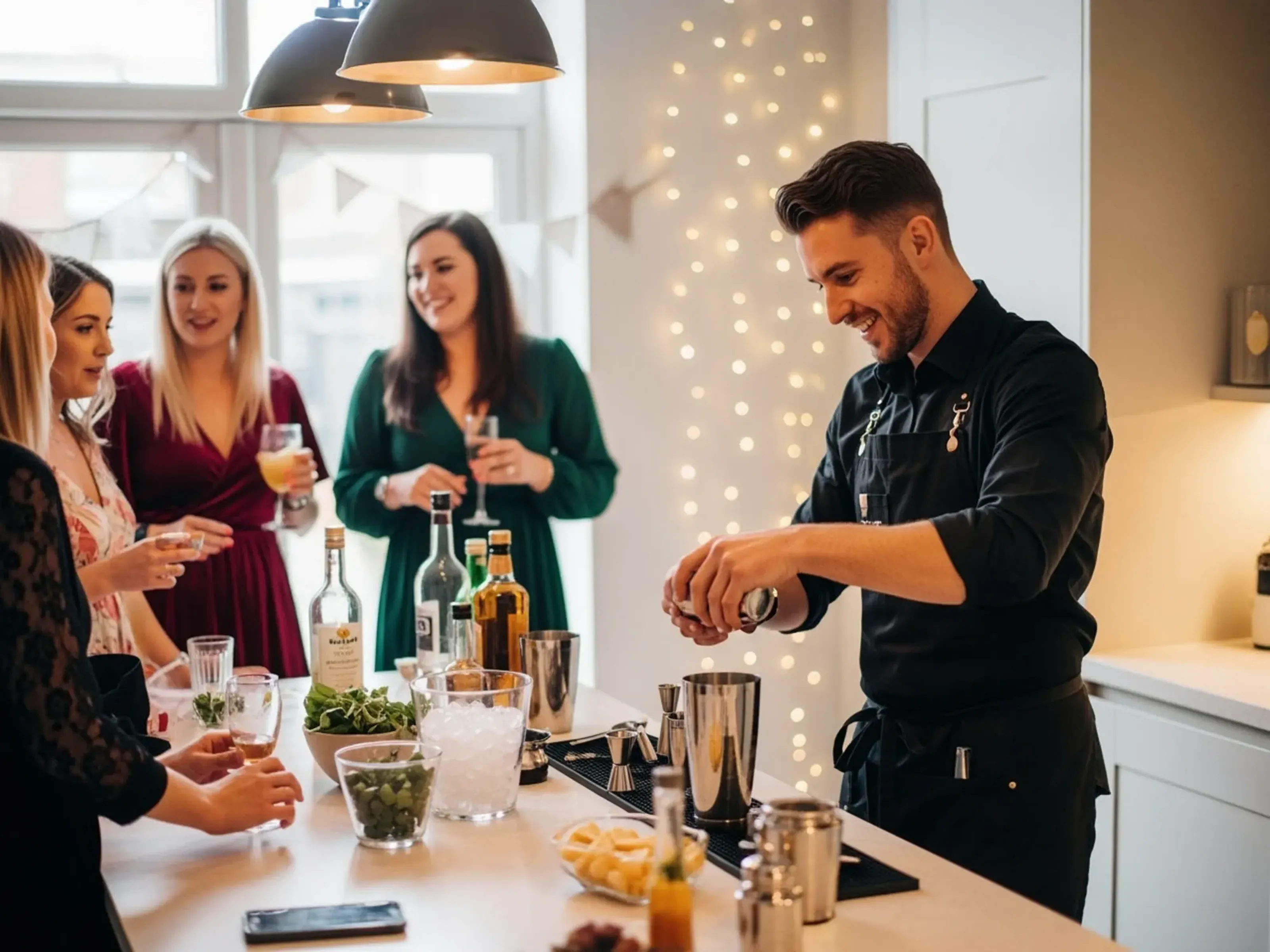 This works brilliantly for smaller groups, more relaxed celebrations, or when you want to extend the party after another activity. If great cocktails with zero effort sounds perfect, hiring a bartender is the easiest way to make it happen.