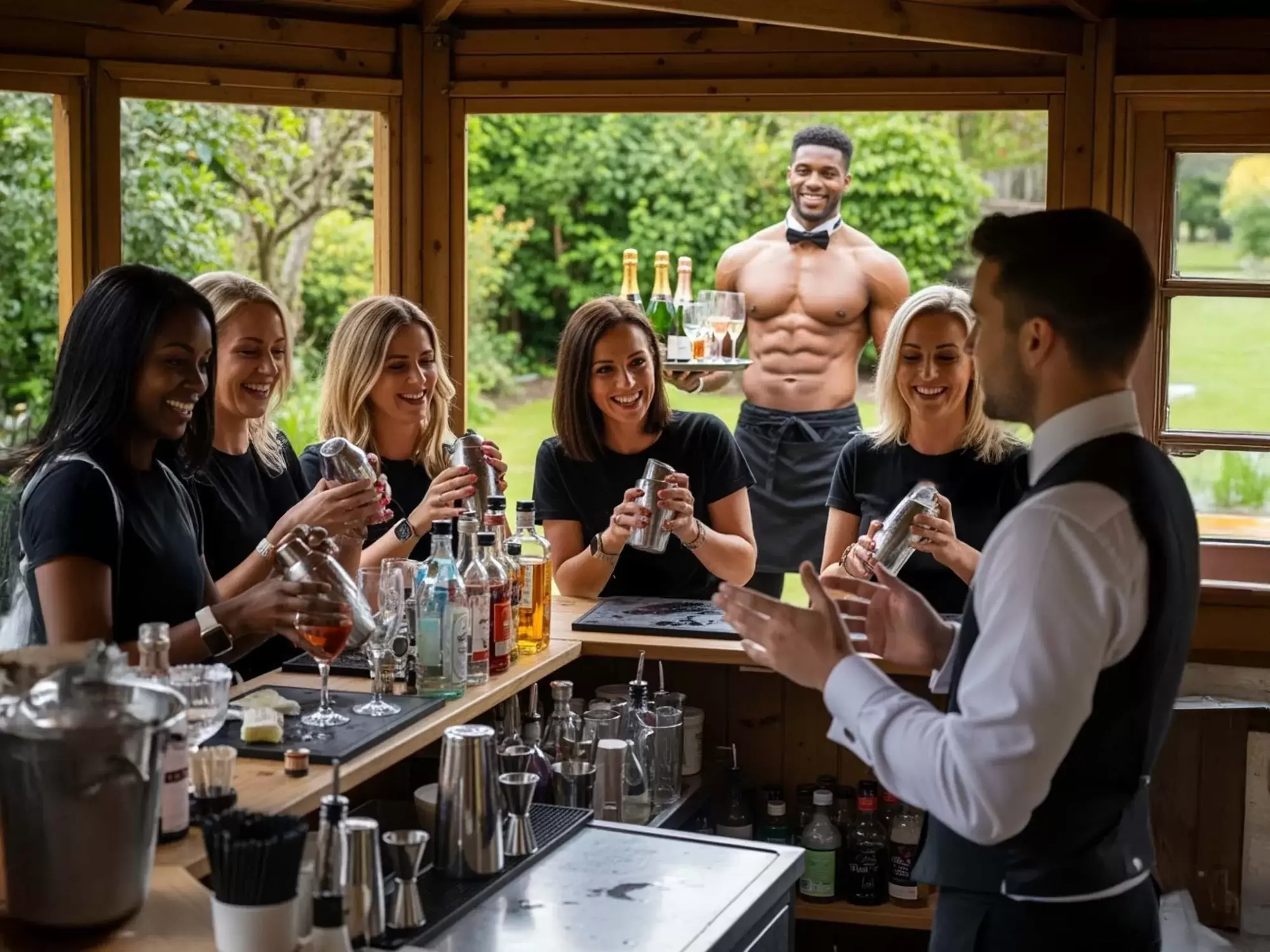 You'll learn techniques like shaking, muddling, and straining, with games and entertainment built in throughout. It's a full cocktail masterclass experience with the bonus of having a buff butler leading the session, which is exactly why it's one of our most popular hen party activities.